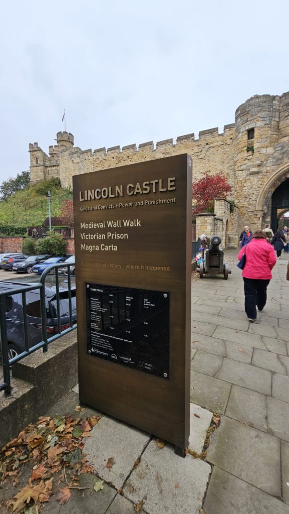The Tour lasted just over an hour and probably should – and could – have been longer as there was so much to take in. When we said our goodbyes to Les just after 1pm, it gave us just enough time to see the rest of the Castle. With lunch beckoning, we took a quick look at the Prison Chapel, the 1215 Magna Carta (a shame – no photography allowed) and finally, a scramble up the spiral staircase for me to see that unrivalled view of Lincoln Cathedral. Just my luck that the lift was broken! Today’s factoids: The Victorian Prison Chapel is the only one surviving IN THE WORLD, and the Magna Carta here is one of just FOUR in the UK! 👍