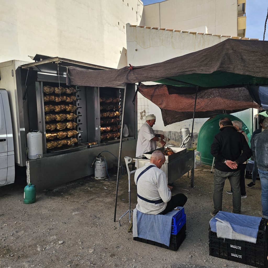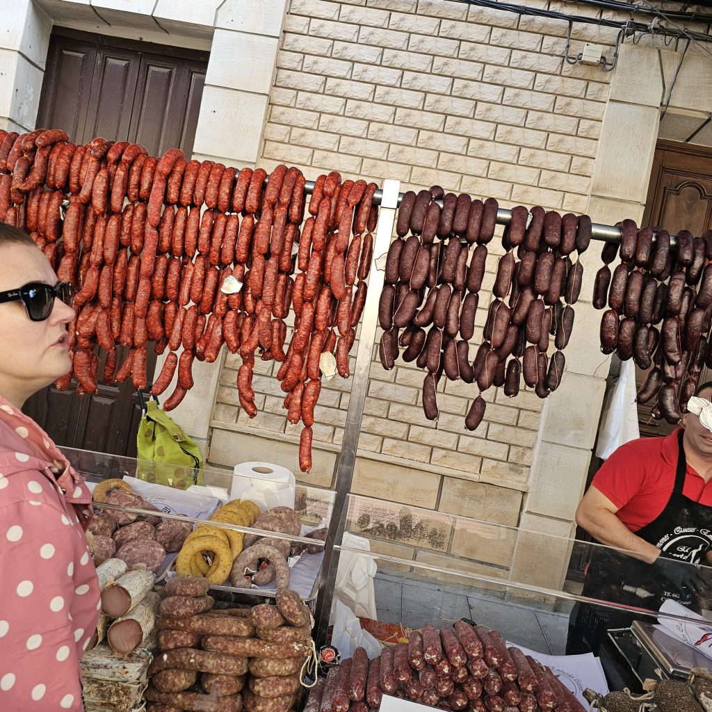 This one was no exception, with pretty much every stall doing a good trade. Fruit, Veg, Fish, Sausages, Clothes, Knickers and Chickens – you name it, they had it! Including raw potatoes, pre-cut for tasting (yes, really!)😮