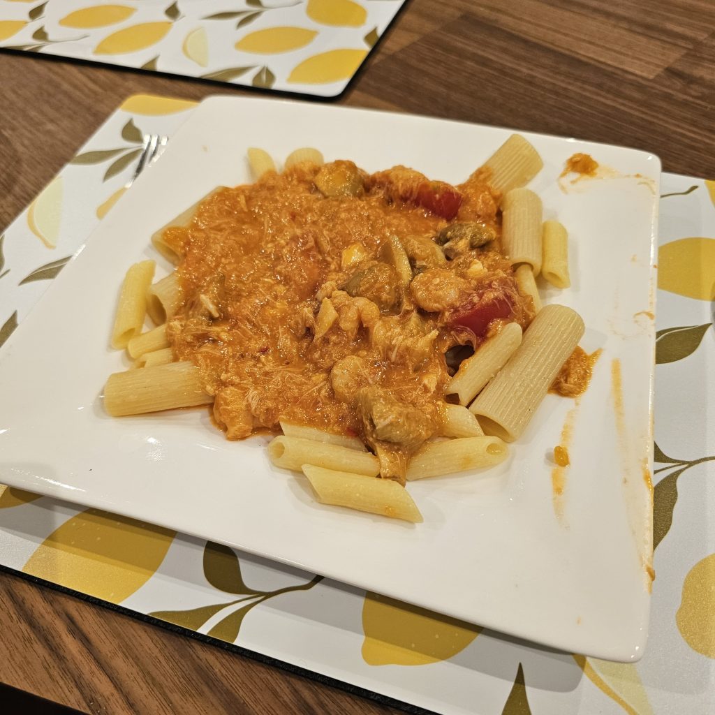 6.15pm: Roy was Chef tonight and did something magical with seafood and chicken!
