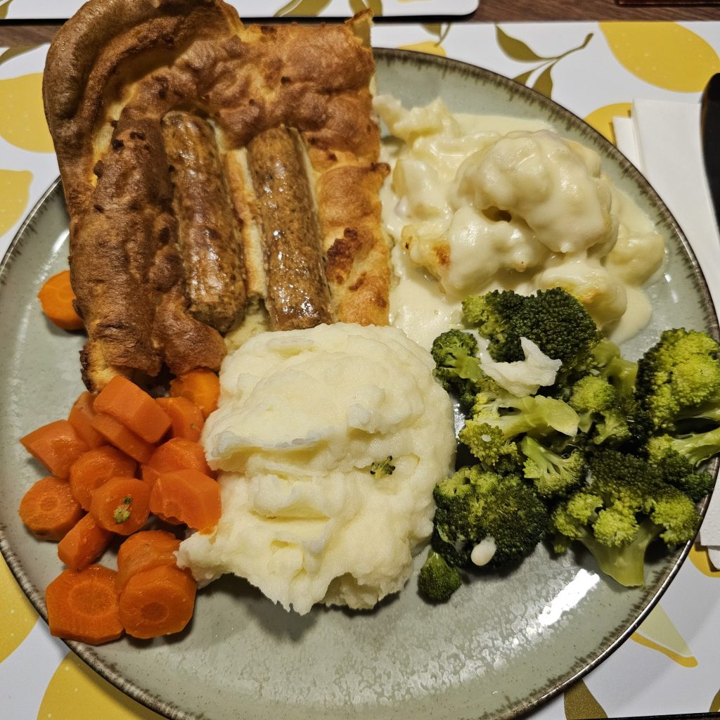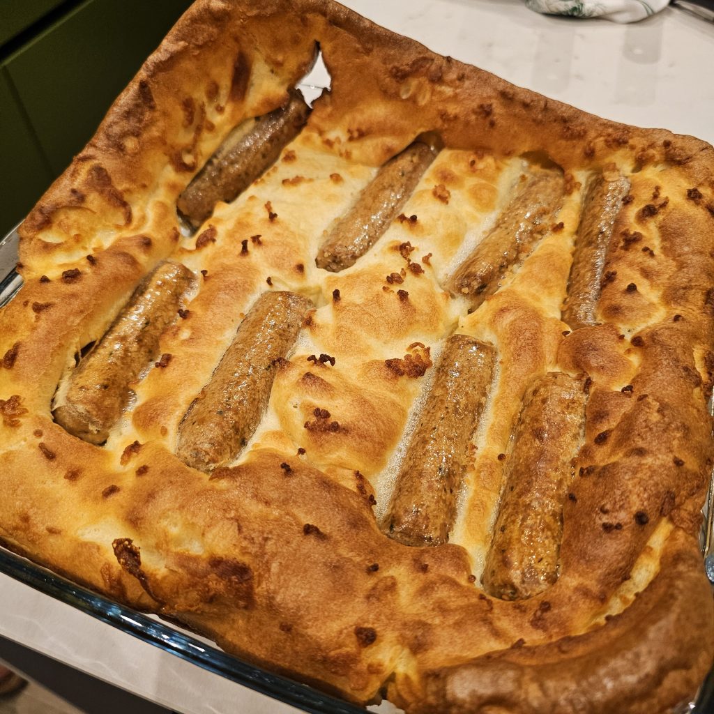 7.40pm: With wasps tamed (albeit taking a shine to Susan), Roy wore his Chef’s Hat tonight again and treated us to ‘Sapo en el agujero’ – aka Toad in the Hole – or as I like to call it (because it’s Spain): ‘Toad in the Olé’ 😩 (Apologies!) 🤣😂🤣😂