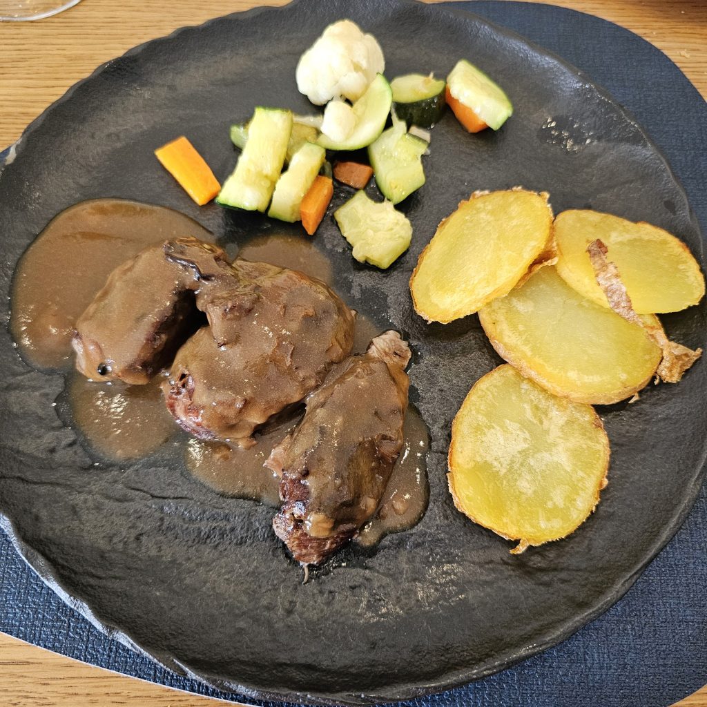 After Breakfast, it certainly wasn’t the weather for sun-bathing! There was now a strong, cold wind blowing that made it feel more like the UK. Maybe Mother Nature was getting us ready for our return? Instead, we turned our attention to the inevitable task of packing for our departure tomorrow ☹️☹️. We then caught up with episode 8 of Celebrity Traitors, so we’ll be totally up-to-date to watch the final when we get home (assuming we can avoid any spoilers appearing overnight).