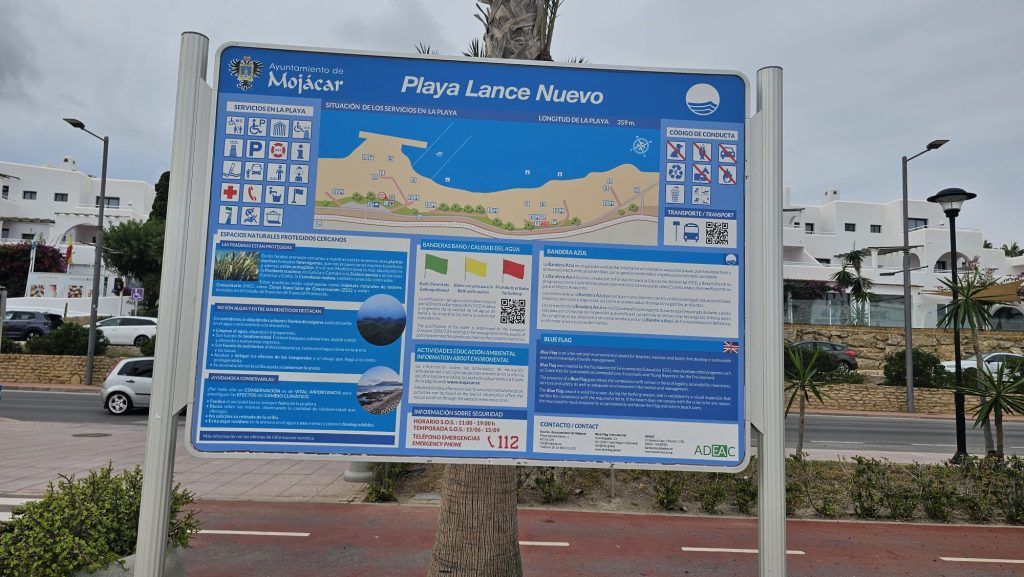 1.30pm: We arrived in Mojacar to a slightly overcast blue sky, but it was still comfortingly warm at around 22℃. A quick look around the restaurant area revealed that they weren’t all open, limiting our choice. We settled for the unassuming Restaurante Bellavista. The beach wasn’t the prettiest we’ve ever seen but there were a few souls enjoying the experience including swimming in the sea.
