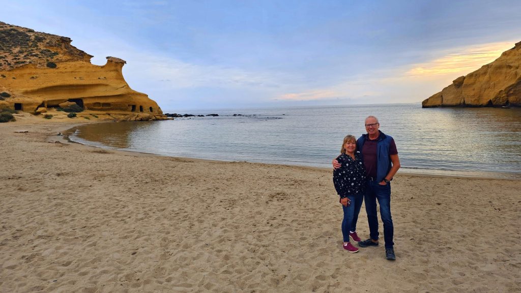 4.45pm: Returning to the car, on our way back to base, we decided on a nostalgic detour for Roy & Susan and we headed for Playa Los Cocederos – a small beach located between the Province of Almería, and the Region of Murcia.