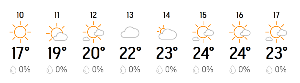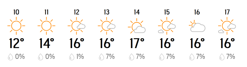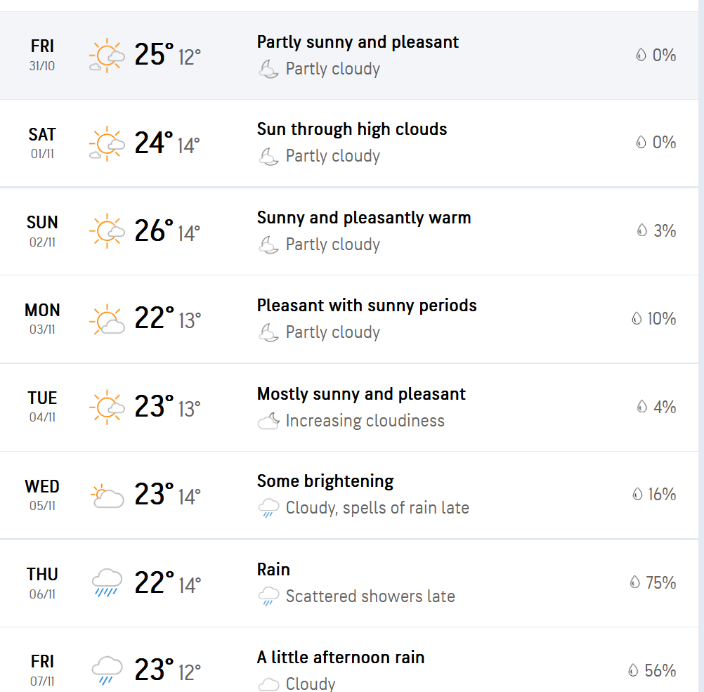 The weather forecast looks attractive, especially when compared to the UK at the moment! 😊