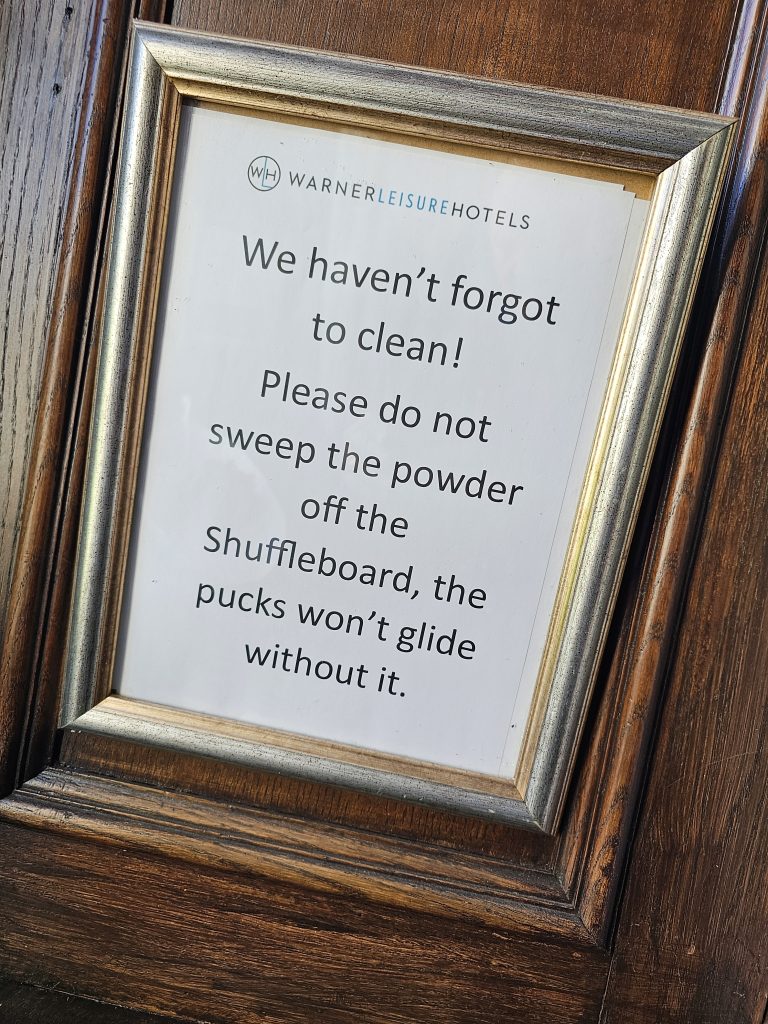 Welcome to Sunday! Axe-throwing is OFF (was it ever ON?) 🙁. The rest of Herefordshire can now rest easy knowing that my attention is now in the direction of Trivial Pursuits or Shuffleboard! 👍. Staff members, Jack and Hannah are doing a great job this weekend, as they seem to running everything here – they sing too!!