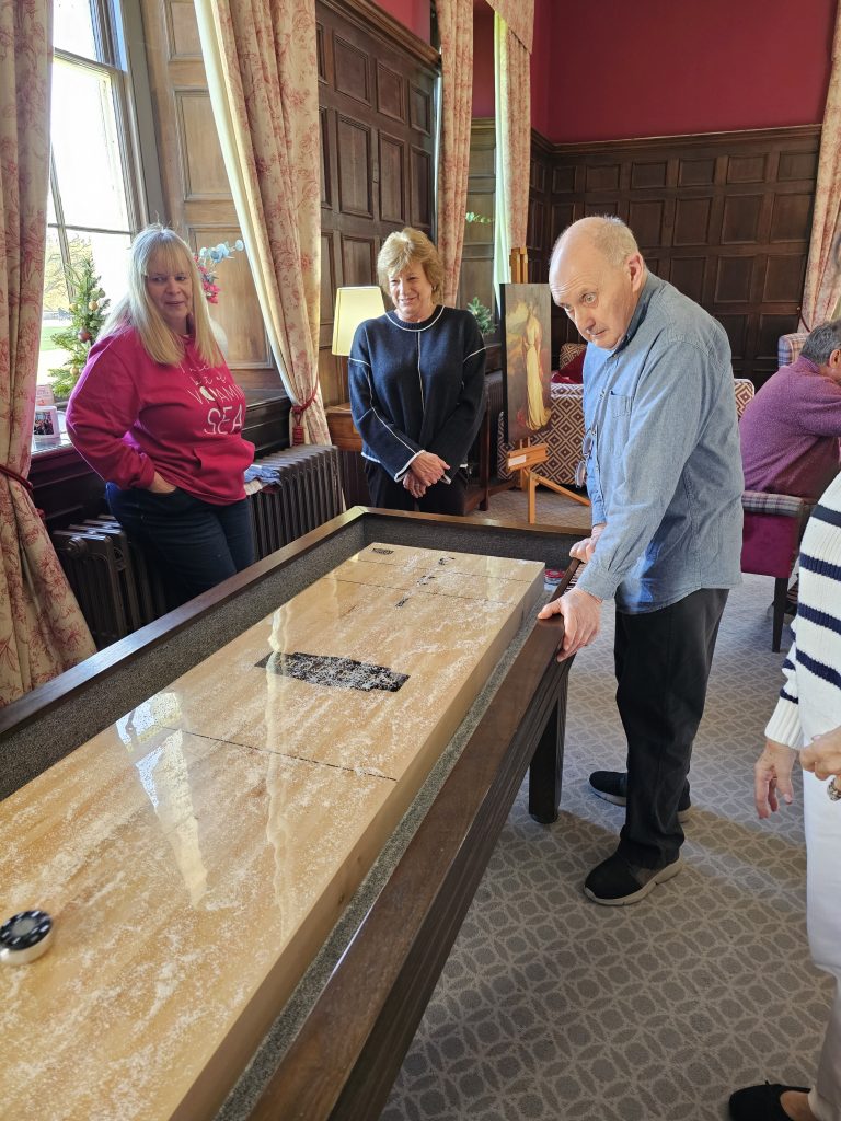 Surely the most accurate shot must have gone to ‘Nutter Paul’, who managed to steer his puck over the maximum distance, where it therefore scored maximum points, balancing perfectly 50/50 on the edge of the playing area! Impressive!! 👍