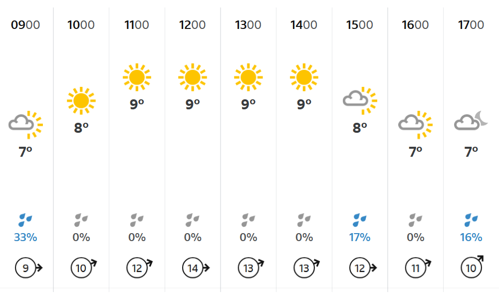 Good to see that if the forecast is accurate, we’ve got less rain and a warmer day than yesterday! 😉