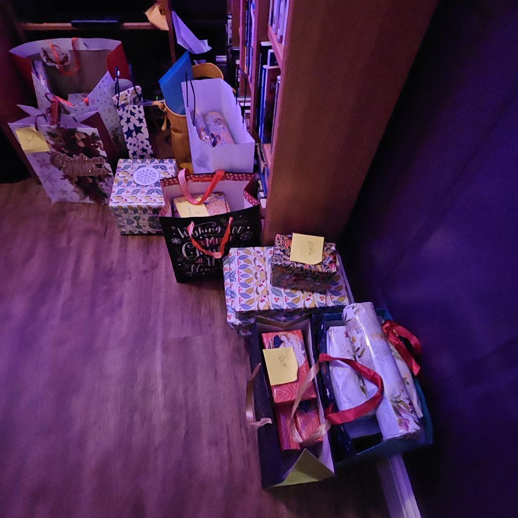 Finally, it was pressy wrapping time. It seemed like more than last year (it actually, wasn’t!) but we pretty much exhausted all our stock of wrapping paper!