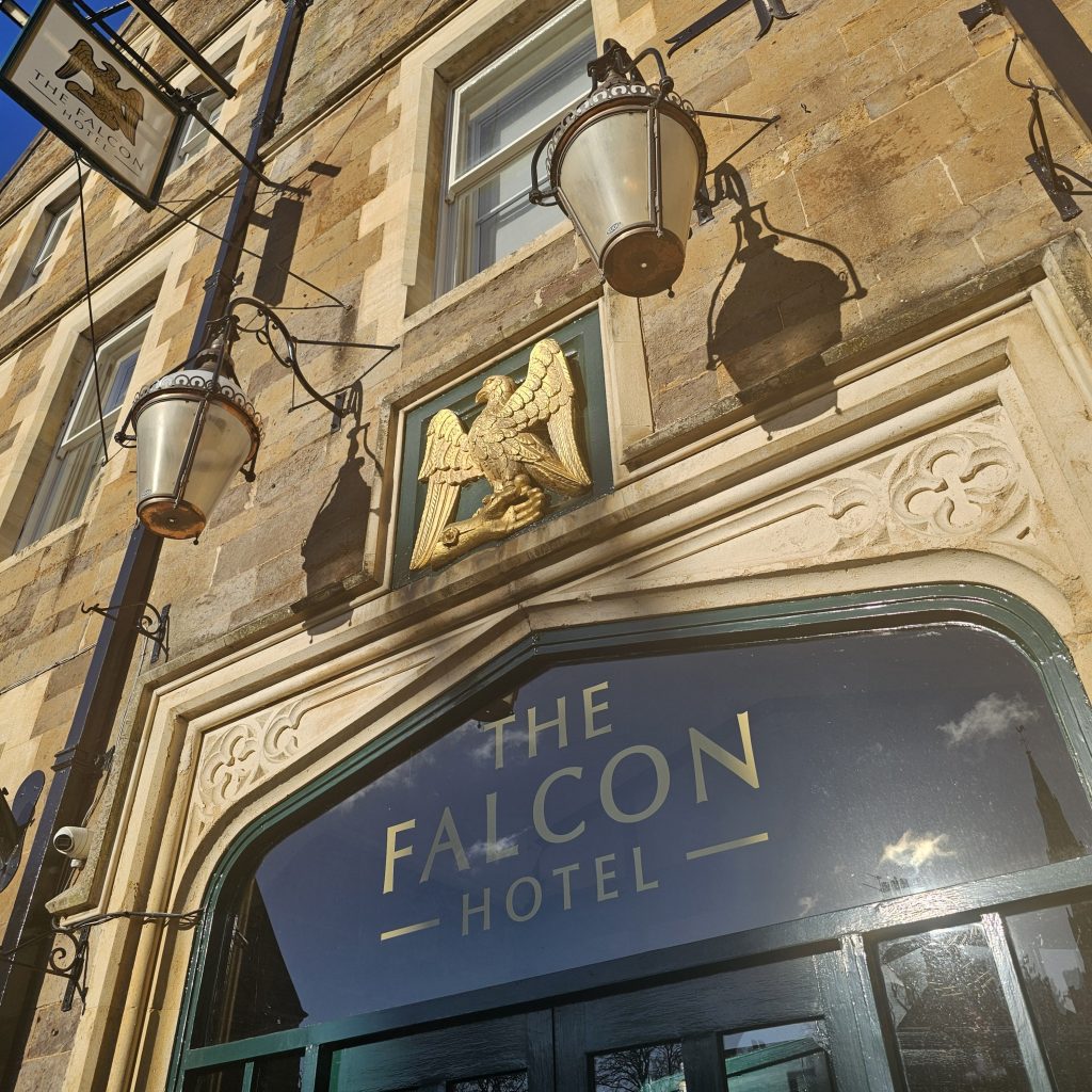 We stumbled across a nearby watering hole – The Falcon Hotel – what a surprise! 😉. Two pints of the local brew for Nick and two halves of the same for me, whilst Celina settled for Hot Chocolate and Ann, a G&T.