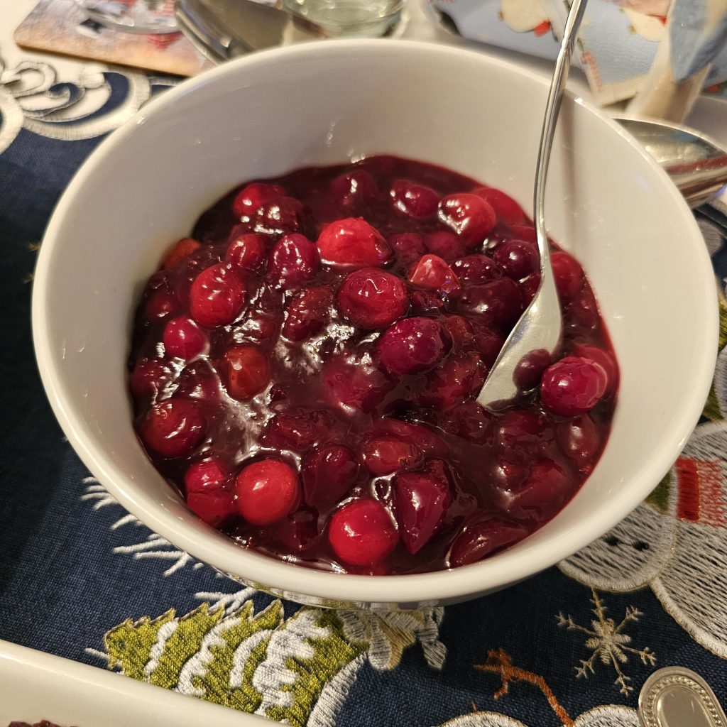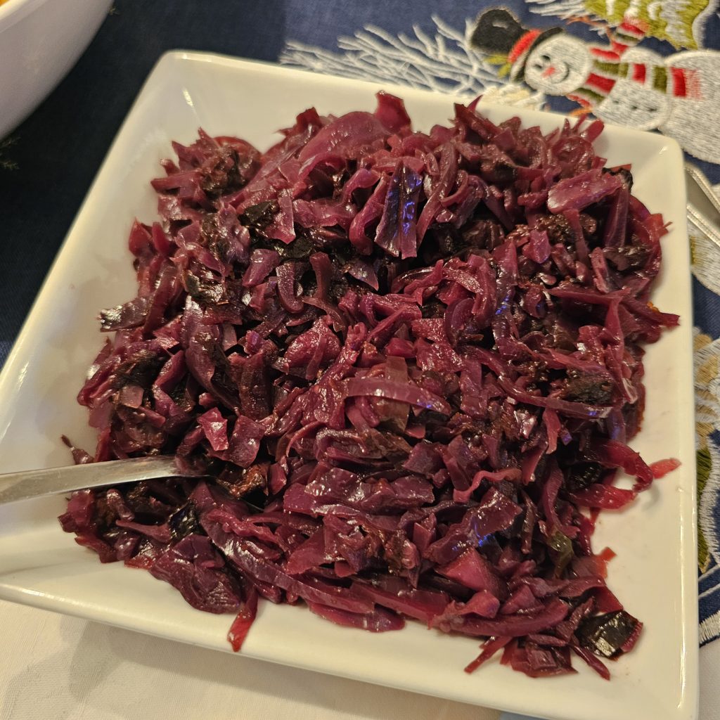 To lighten the food preparation load, Ann created her famous Cranberry Sauce and Devils on Horseback’ whilst Karen brought her rather delicious Red Cabbage.