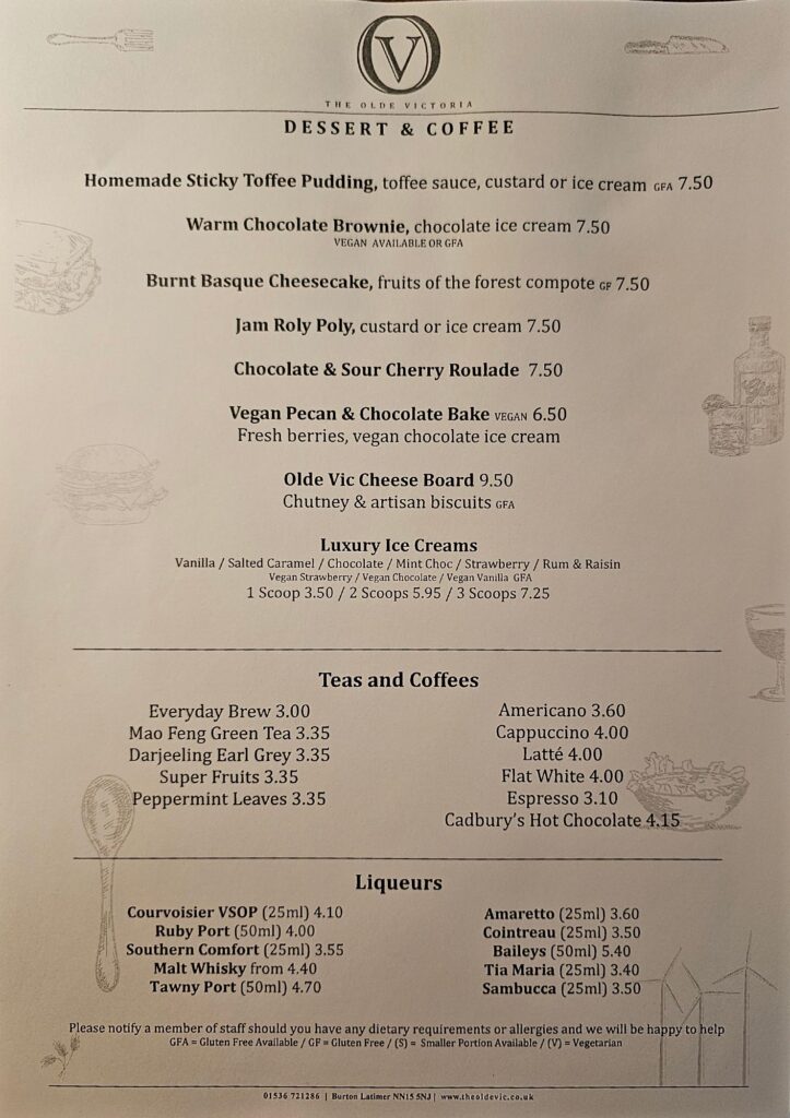 Our Eatery of choice was the ever-reliable The Olde Victoria in nearby Burton Latimer. We do love this place, having only been there as recently as last Sunday with Carole H for Lunch.