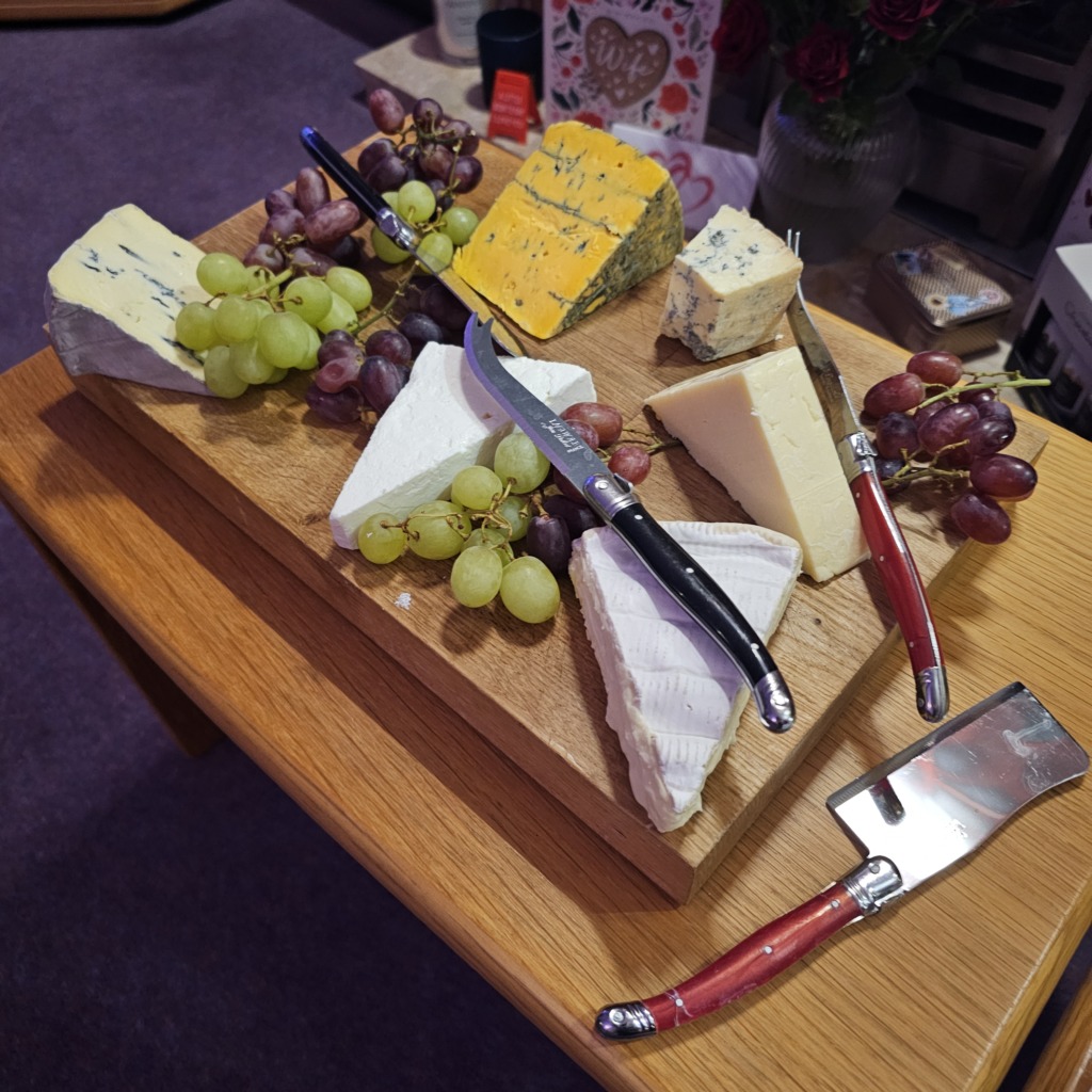 But wait! There’s more! We’re all ‘cheese monsters’, so it was only right that a Cheeseboard was part of the feast (but we did skip the Dessert Course as a concession to Lent!). All in all, then, a great evening with great mates. Here’s to the next one! 😀😀.