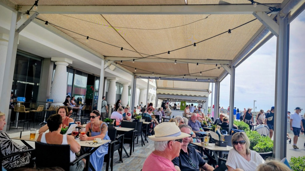 1.05pm: We grabbed a seat in the nearby Barcelo Resort called The Show Factory and attempted to order some drinks and a light snack. Barcelo seemed to own the whole area around here, and it showed in the shocking service. Yikes! A challenging task in itself just to order drinks and nachos! And we weren’t the only ones, as the table next door was getting increasingly agitated playing ‘spot the waiter’! Whilst we waited, we people-watched! We eventually got our drinks and snacks, but it was easily the WORST service we’d experienced since being out here.